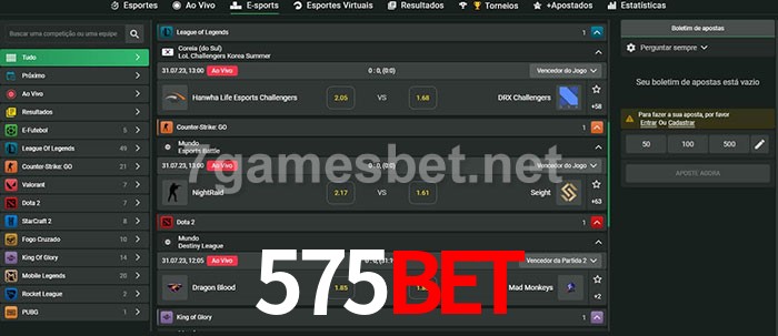 O 575bet oferece uma grande seleção de opções de apostas em e-sports com probabilidades competitivas